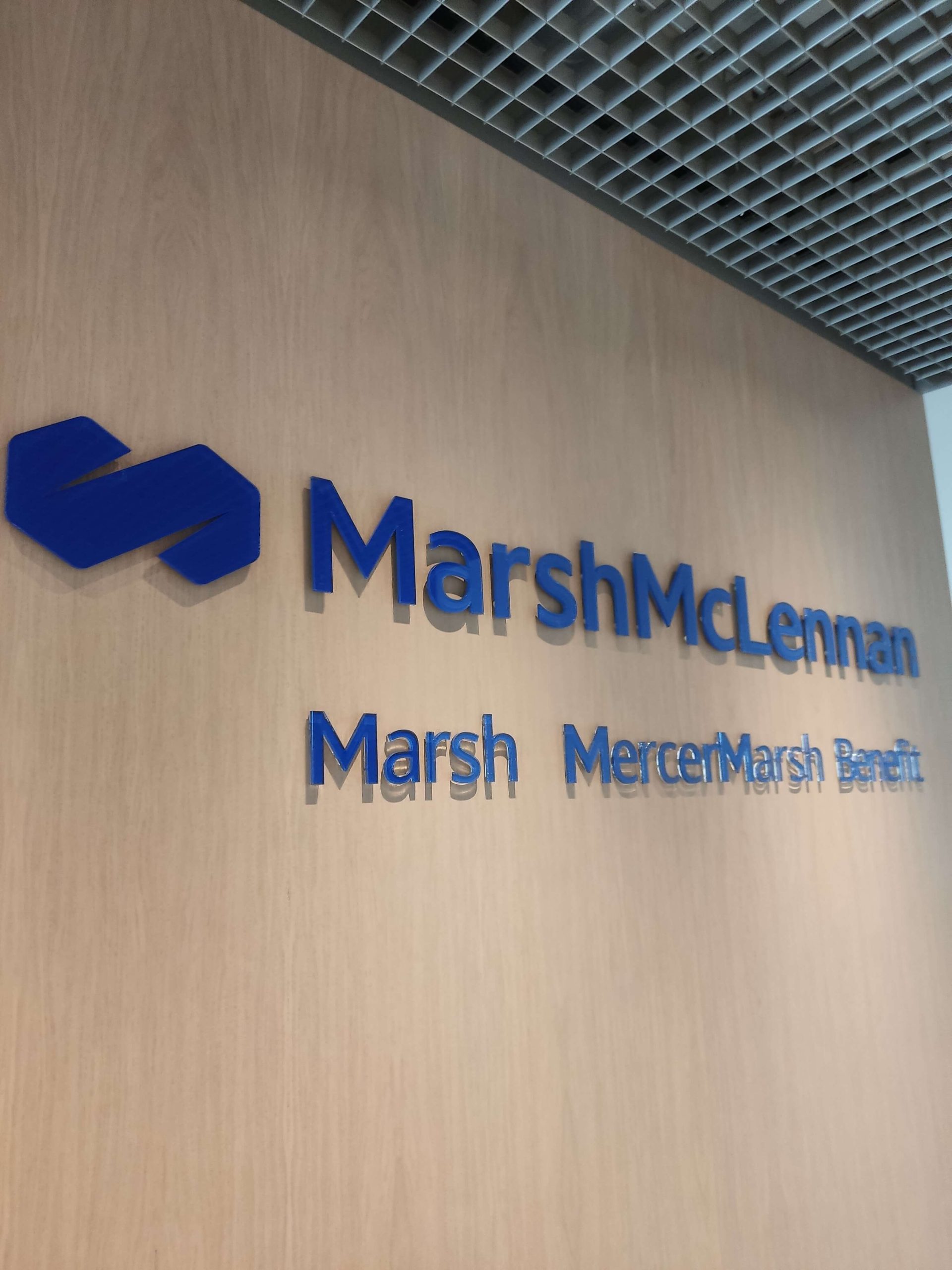 Išnaudojama interjero erdvė reklamai: Naudojant iškilias raides logotipai tampa matomesni ir išraiškingesni.